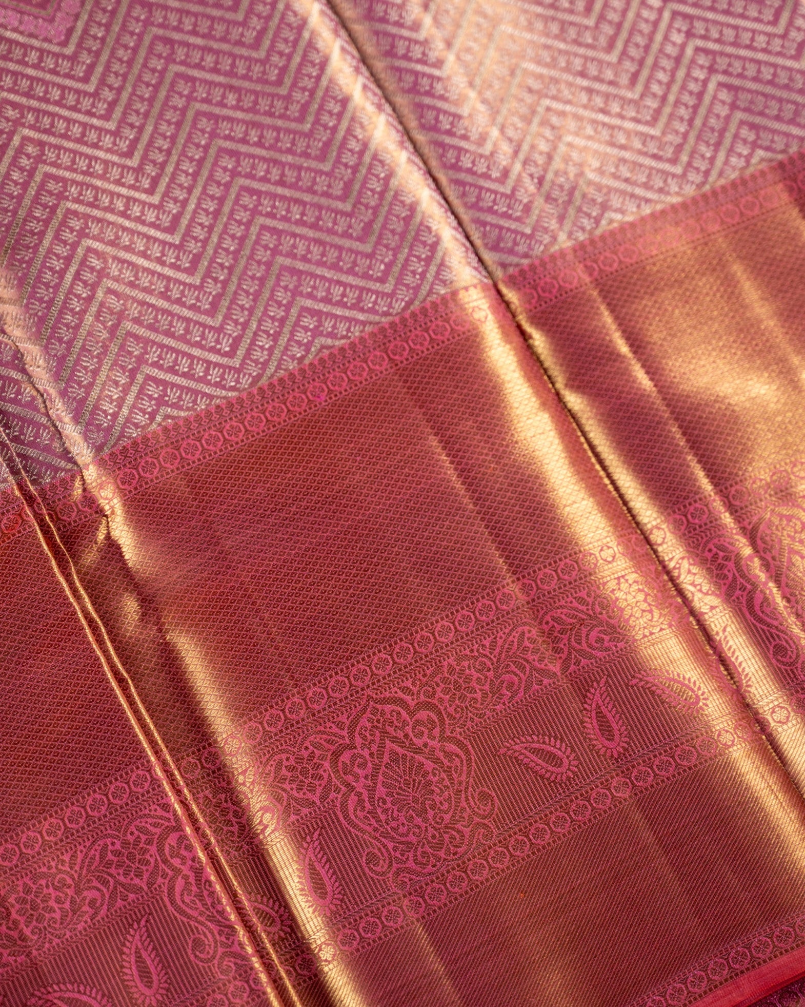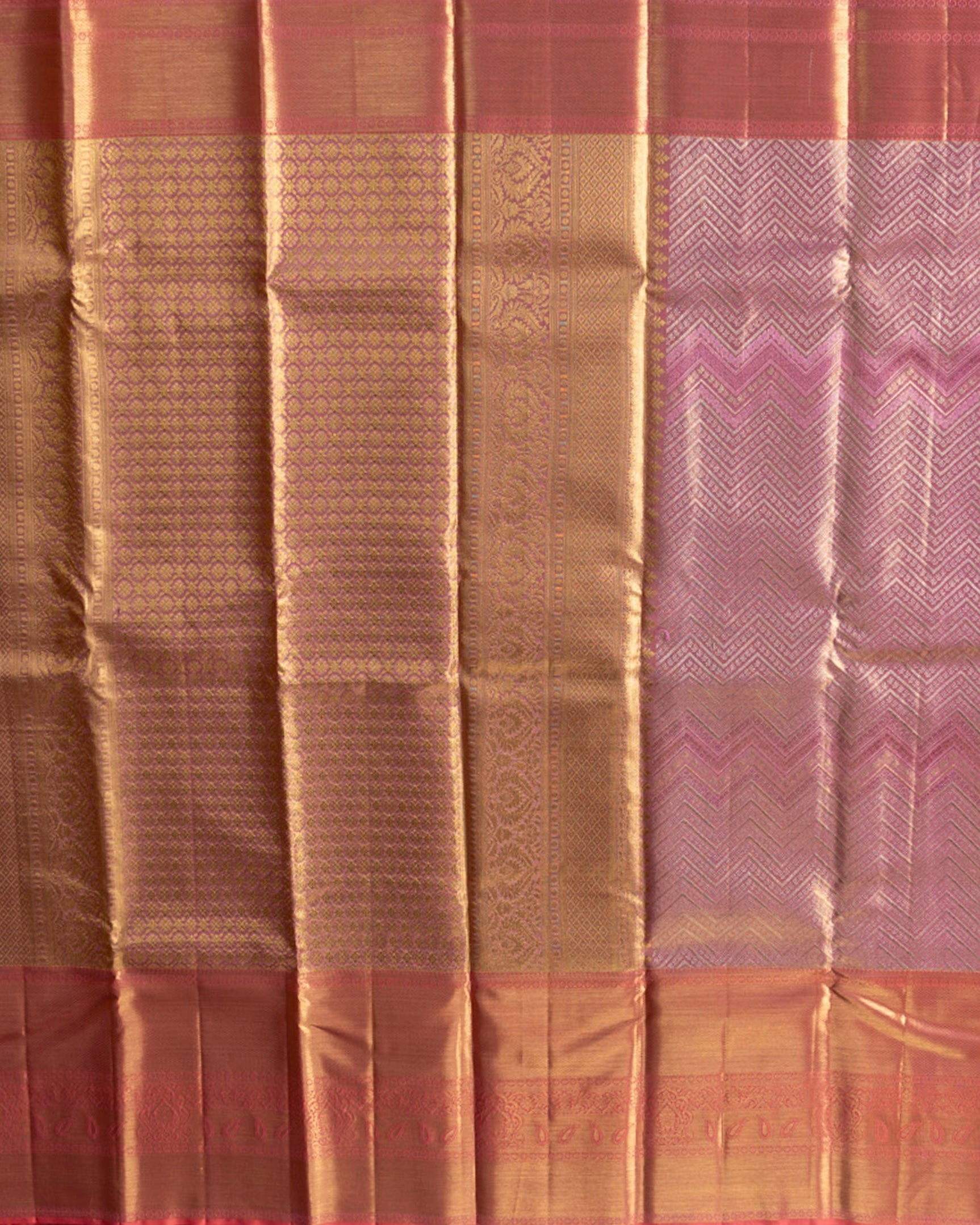 Pastel Pink Pure Tissue Silk Saree Lotus Motifs & Rich Pallu